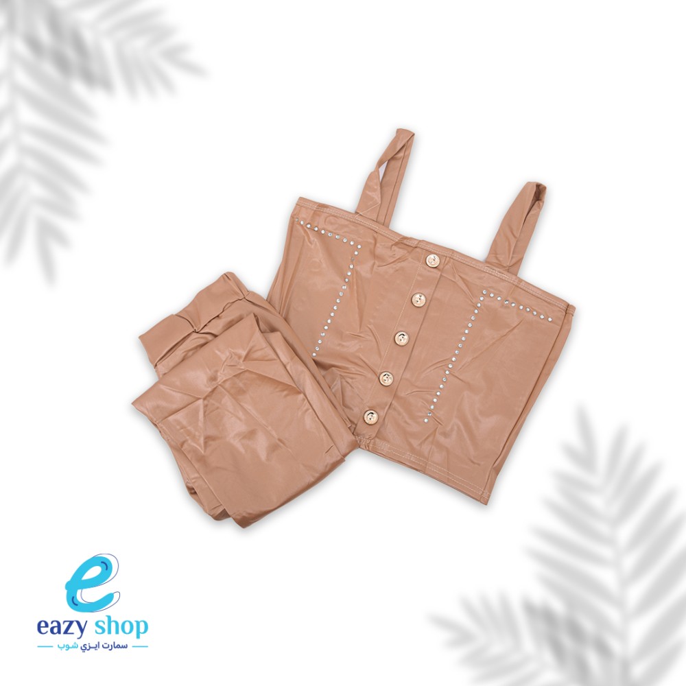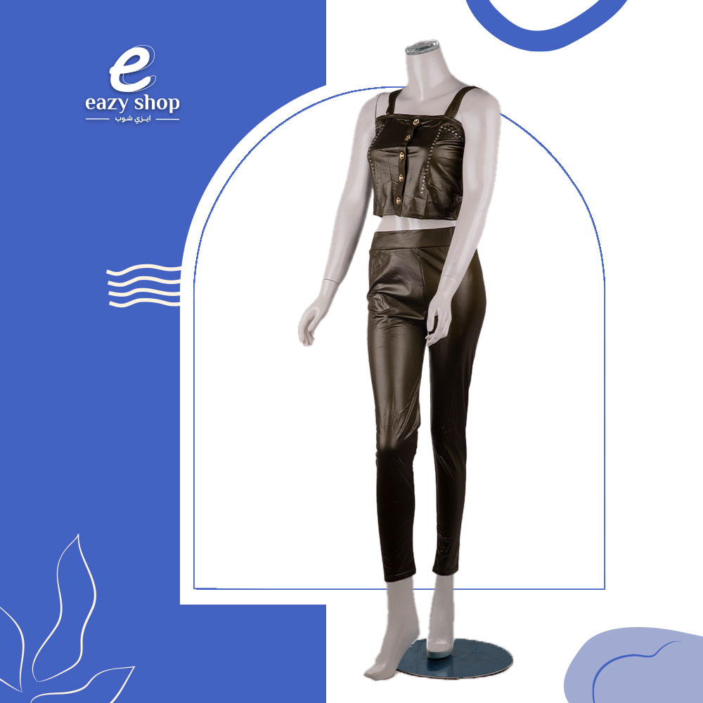 بجامة نسائية قطعتين مصنوعة من الجلد بلوزة حبل رفيع على الكتف تمنحك راحة واناقة في نفس الوقت مع بنطلون جلد بقصة مريحة وستايل عصري خامة مريحة وسهلة اللبس