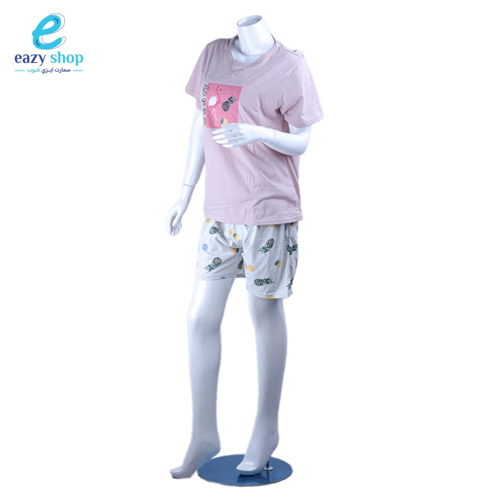 طقم بجامة شبابي شكل تتكون من قطعتين بلوزة نص كم بتصميم مريح مع شورت قصير بخصر مطاطي , مثالية لاجواء الصيف والمنزل والنوم بخامة خفيفة على الجسم وتفاصيل انثوية ناعمة