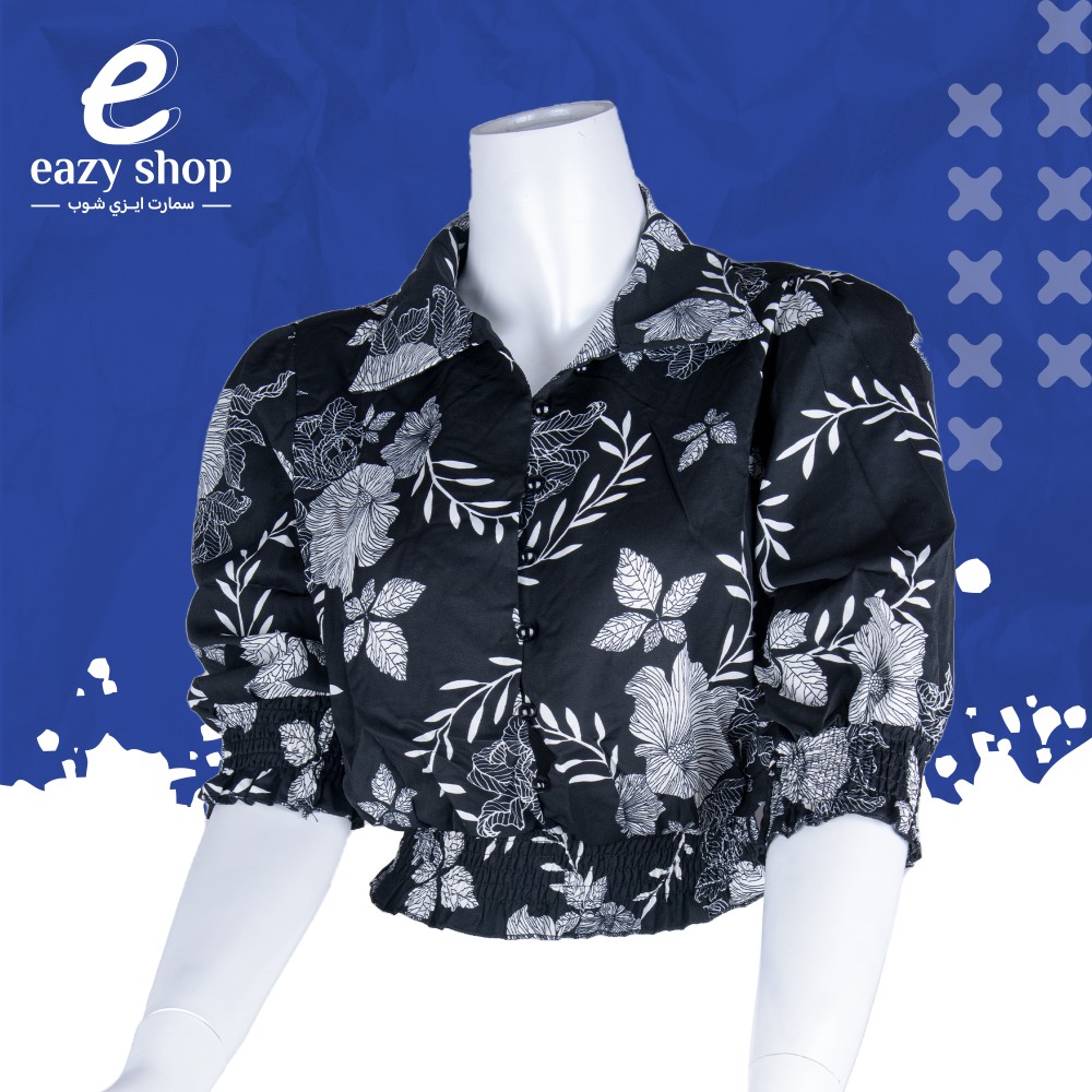 بلوزة نسائي مشجر على ياقة مريحه وتعطي لمسة انثوية راقية , تحتوي على ازرار من اعلى الى اسفل البلوزة من اللول, الكم شبه مكمم على مطاط انيق يضفي راحه وجمال اكثر , الخصر مطاط ناعم ومريح ليناسب مقاسات مختلفة , يتميز بلونيه الابيض والاسود