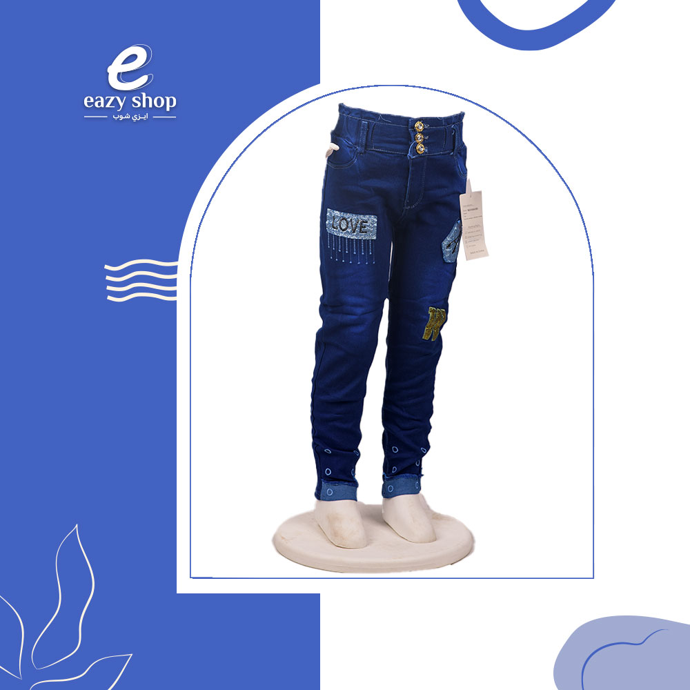 بنطلون بناتي جينز وسط غامق 5 ازرار AW29