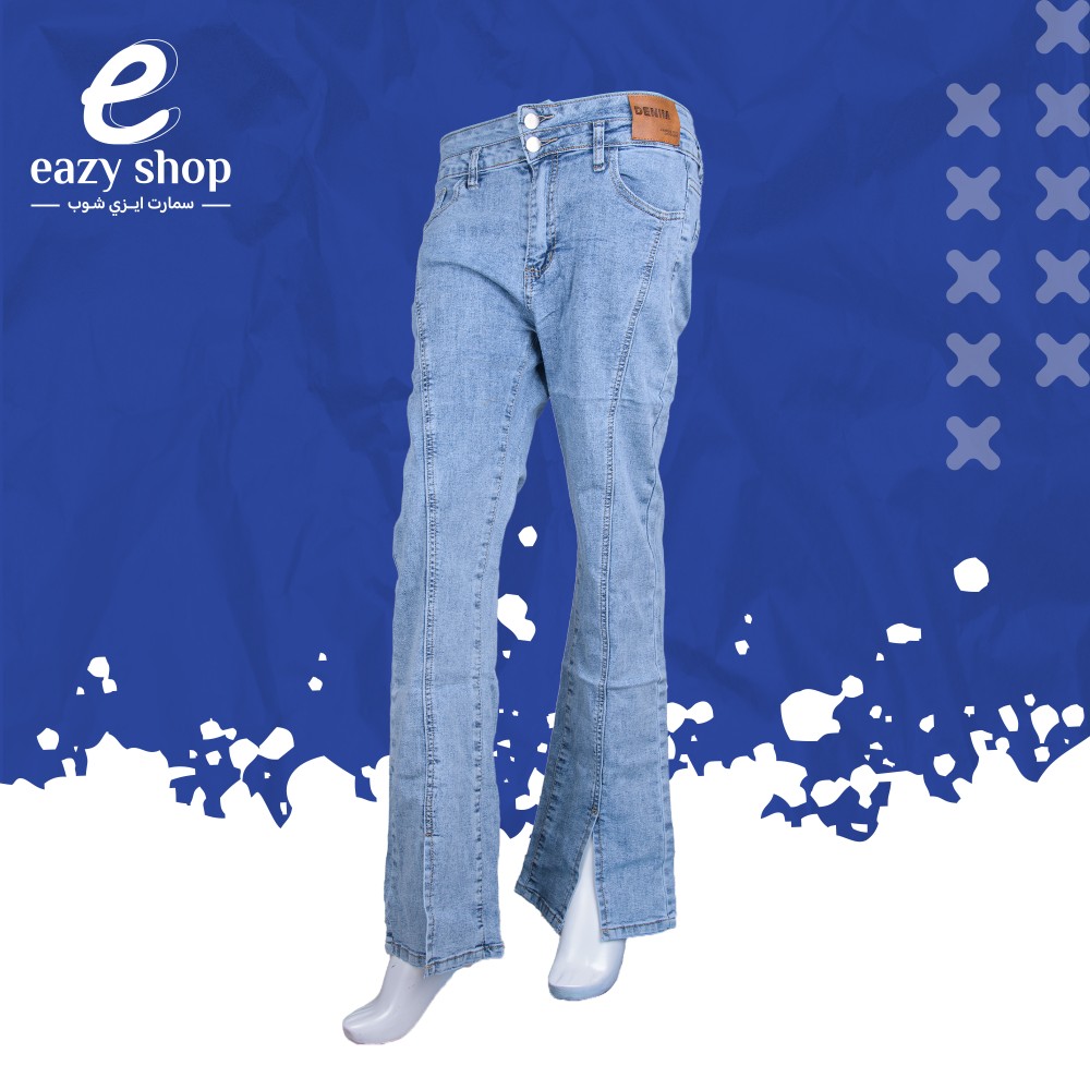 بنطلون جينز نسائي انيق كاجوال , بقصة فرنسية تضفي اطلاله مميزه ضيقه من الاعلى وواسعه من الاسفل على فتحه اسفل البنطلون تعطي شكل مميز