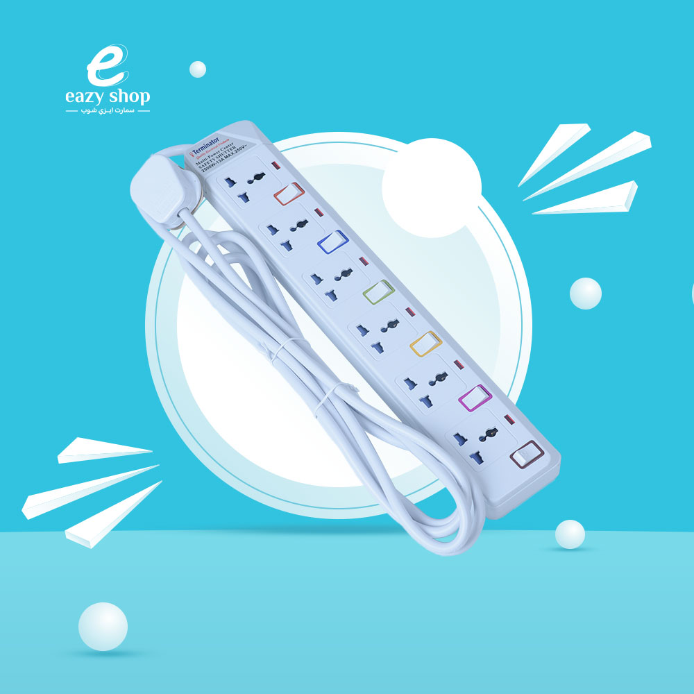 توصيلة كهرباء اصلي تحتوي على 6 منافذ وسلك يصل الى 3 متر