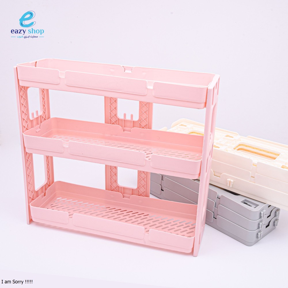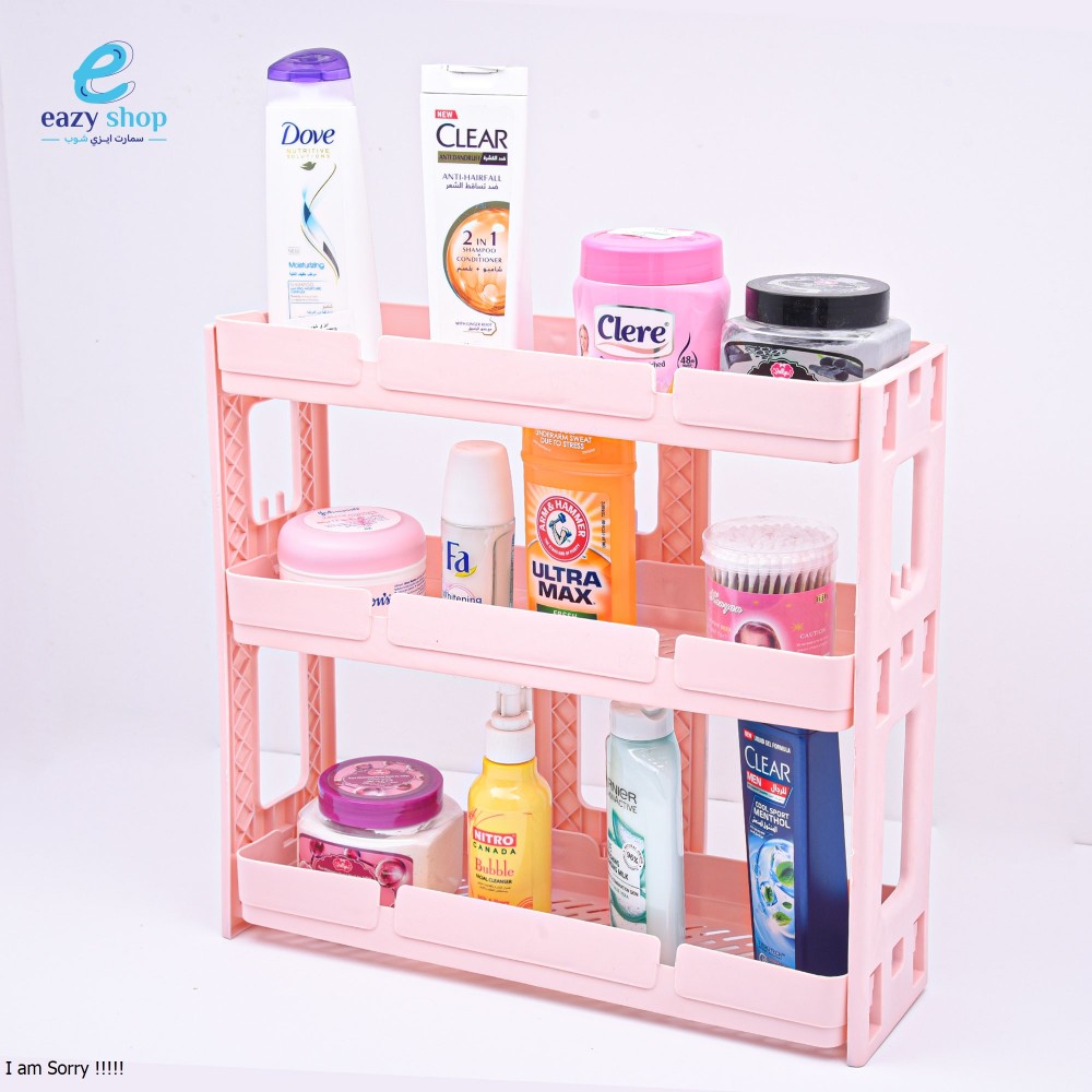 رفوف بلاستيك 3 دور يسهل لك تخزين ادوات الحمام من شامبو وكريمات وغيرها وأيضاً يمكنك استخدامه في المطبخ لحفظ البهارات