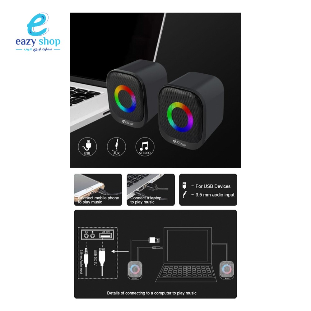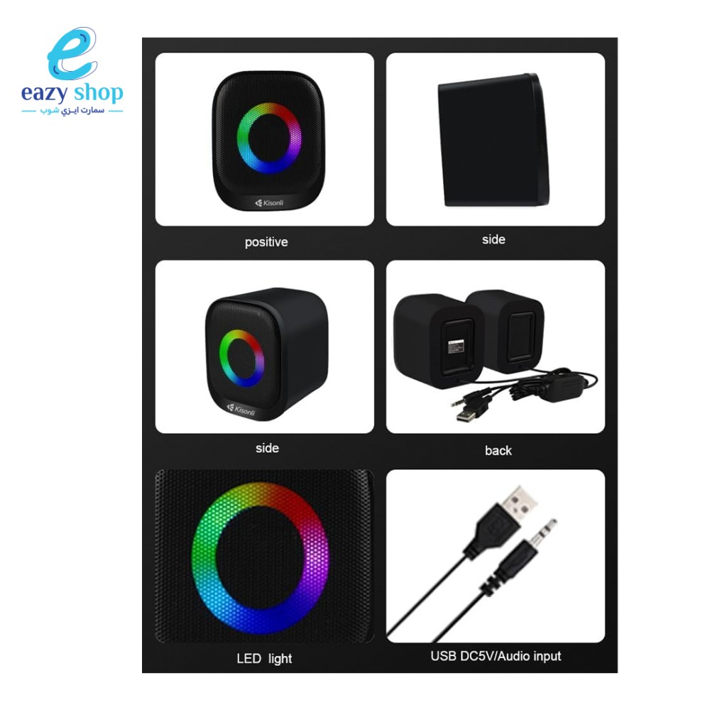 • مدخل AUX مقاس 3.5 مم ونظام صوت ستيريو عالي الدقة للمكتب لأجهزة الكمبيوتر الشخصية وأجهزة الكمبيوتر المحمولة والهواتف اللوحي