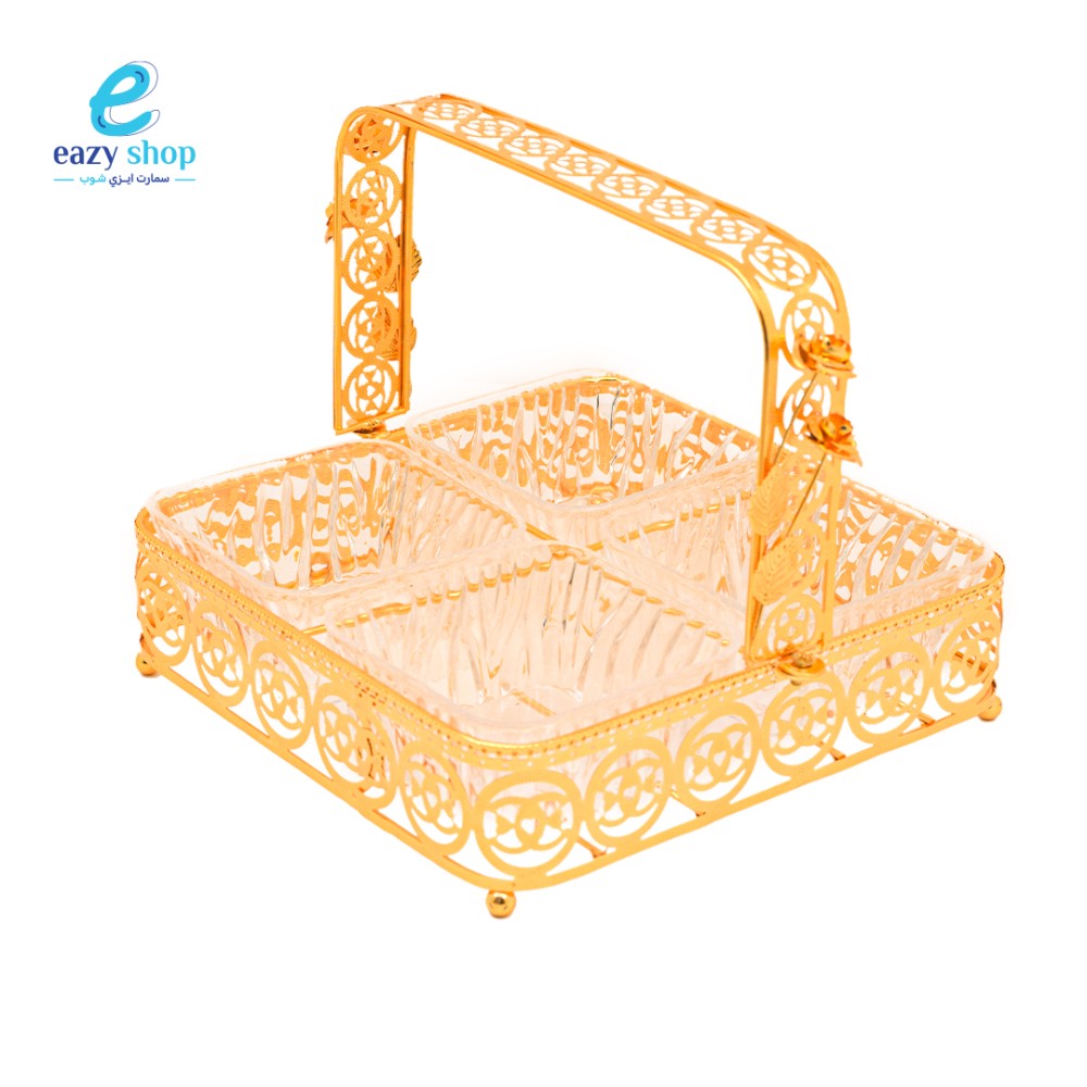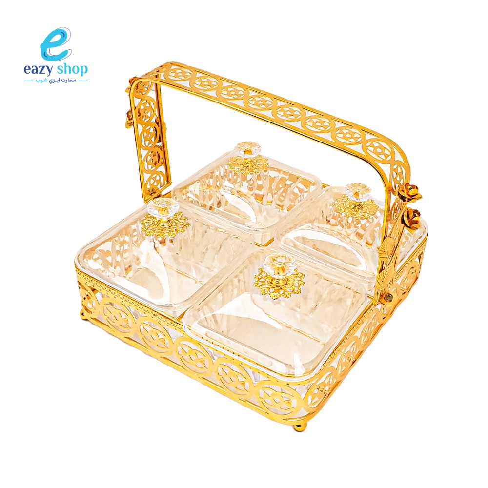 طقم صحون تقديم حلوى أربع فتحات مع ممسك، لتقديم الحلويات والمكسرات وأيضاً البسكويت والكعك