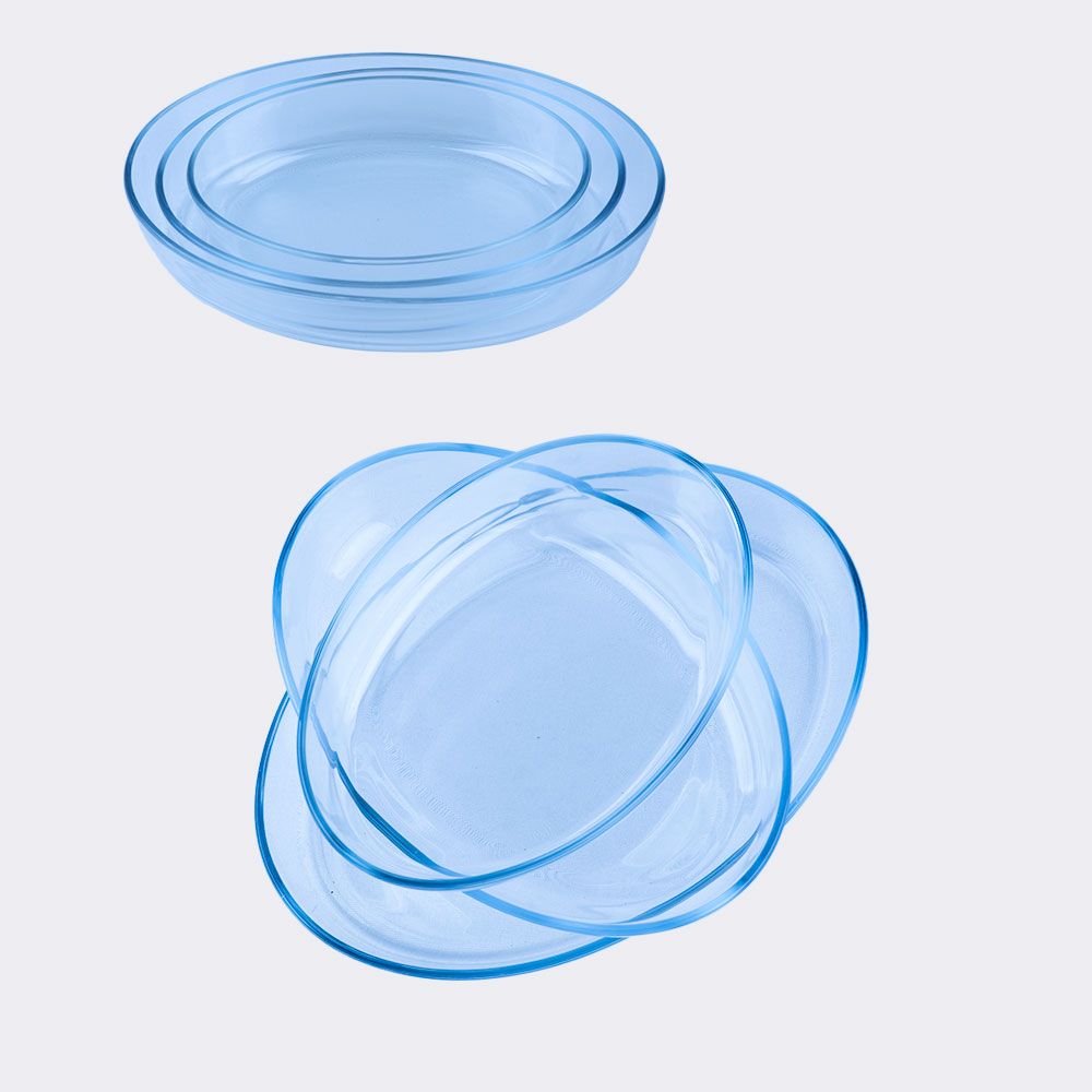 طقم صحون زجاجي حراري مدور