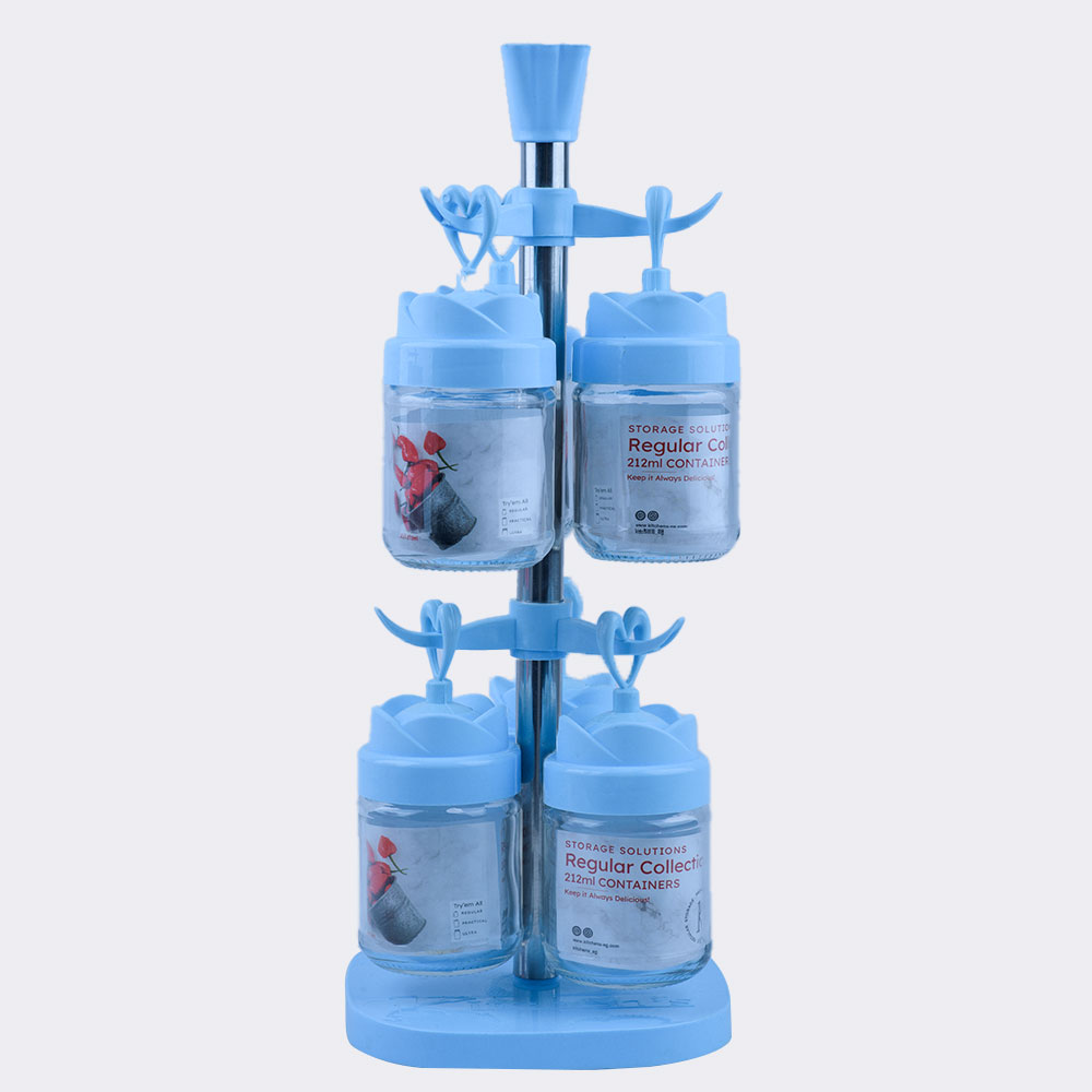 طقم علب بهارات مع قاعدة بلاستيك بشكل عصري يسهل عليك تخزين وحفظ البهارات ويمكنك من الوصول إليها بسهولة