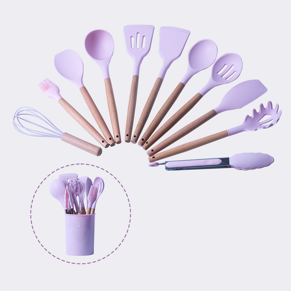 طقم ملاعق مصنوع من السيليكون والمكون من 12 قطعة والتي تتضمن كل ما تحتاجه لأي مهمة طهي. تتميز برأس مرن وسطح ناعم لطيف على أواني الطبخ الخاصة بك ويمكنه تحمل الحرارة العالية ودرجات الحرارة الباردة الشديدة