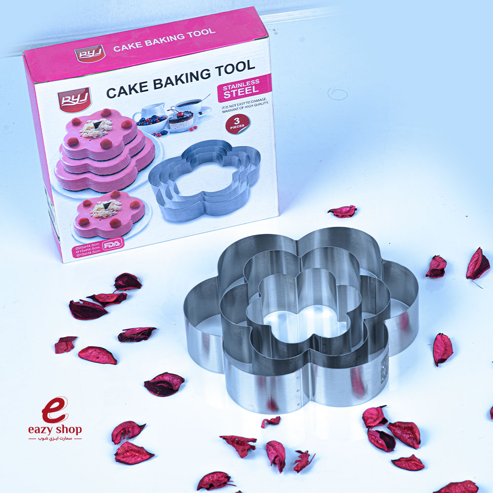 طقم نقشة كيك مصنوع من الاستيل المقاوم للصدأ قوي ومتين يحتوي على 3 احجام مختلفة