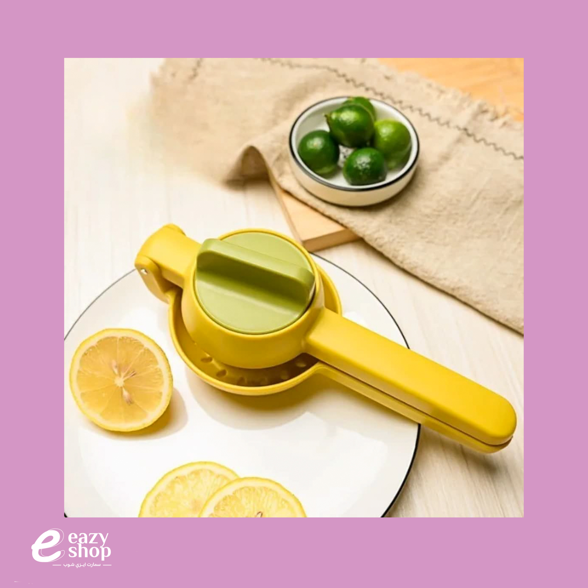 عصارة ليمون يدوية صفراء اللون، تُستخدم لعصر الحمضيات مثل الليمون والبرتقال