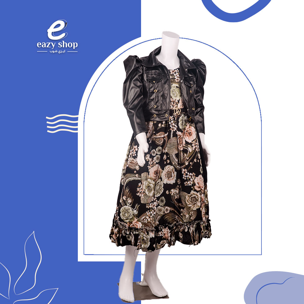 فستان بناتي جلد وشيفون كبير الى 38 AW56