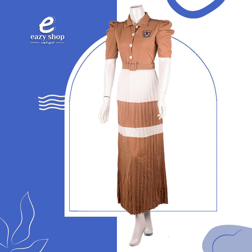 فستان نسائي مقلم تحت طويل أزرار صدر AW68