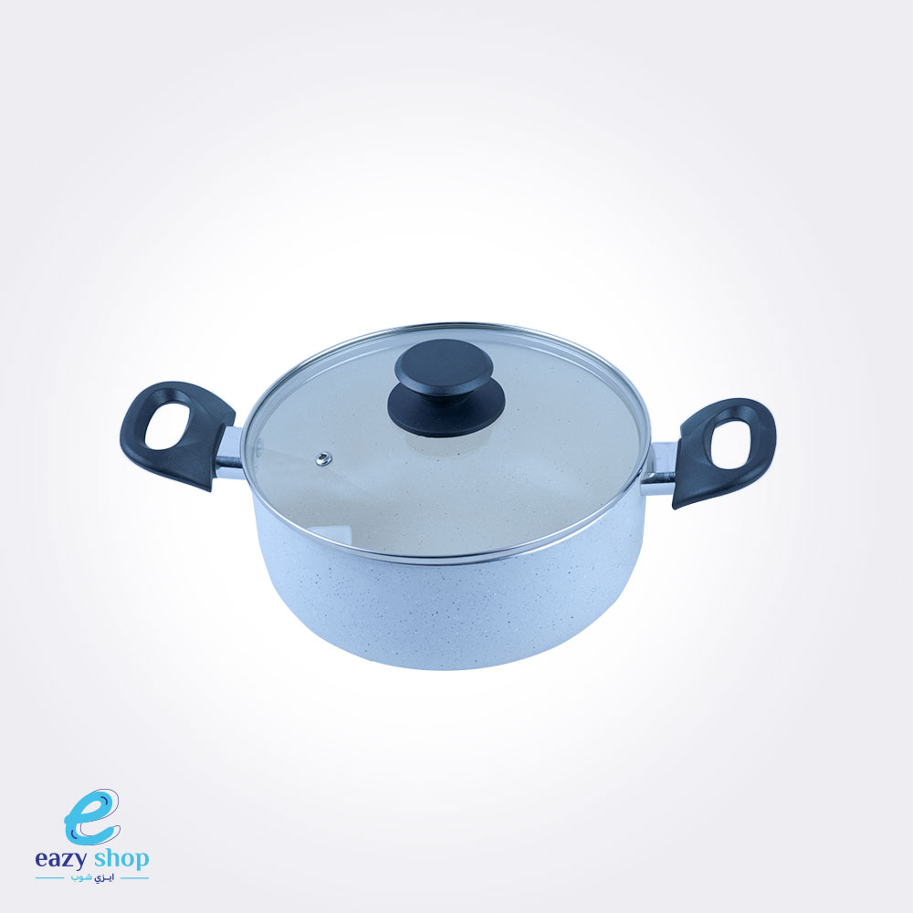 قدر طبخ مصنوع من الجرانيت القوي والمقاوم للحرارة بغطاء زجاجي حراري بثقب تهوية ومقبض بلاستيكي مقاوم للحرارة