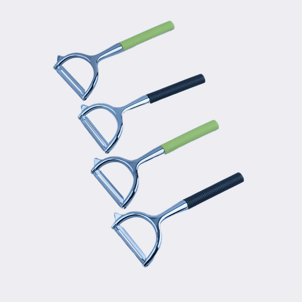 مقشرة الخضروات ذات الرأس الفولاذي القوي المقاوم للصداء ومقبض مصنوع من مادة بلاستيكية غير قابلة للانزلاق، مما يجعل من الصعب إزالته، لذلك فهو آمن وموثوق.