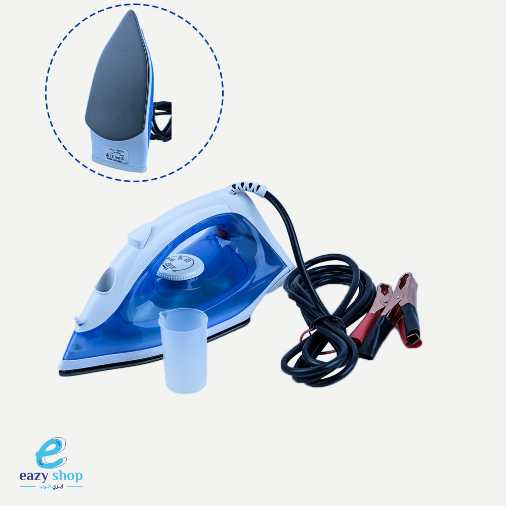 - مكواة كهربائية تعمل على البطارية 12 فولت مع بخاخ للكي