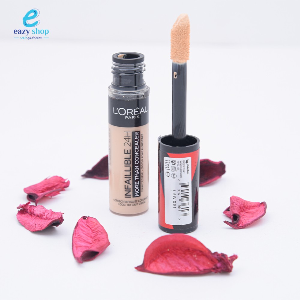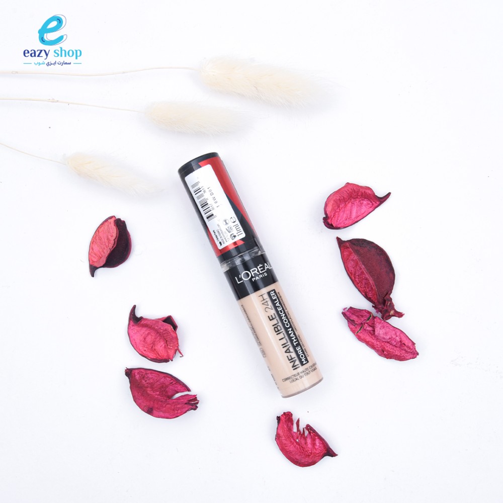 كونسيلر لوريال تركيبة كريمية سهلة التوزيع ، تعمل على إخفاء الهالات والعيوب والتصبغات في البشرة ، ضد الماء تركيبة غير دهنية ، تغطية تدوم 24 ساعة