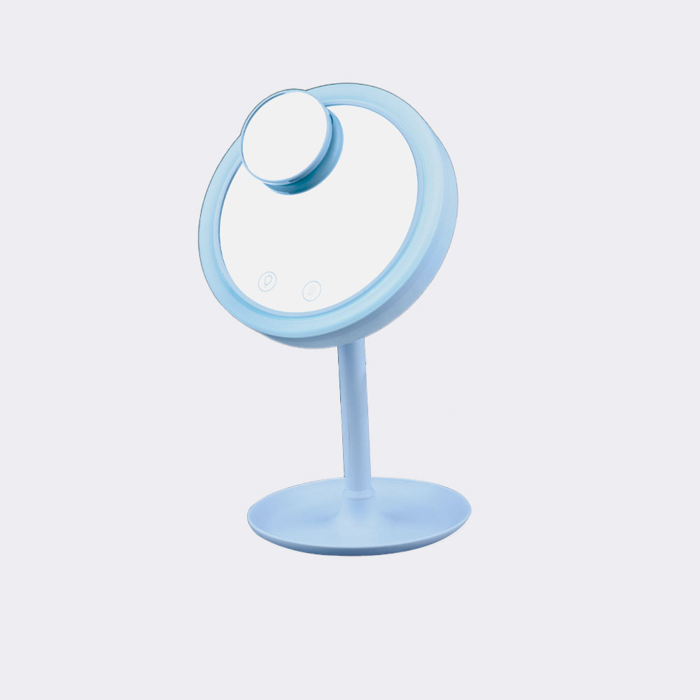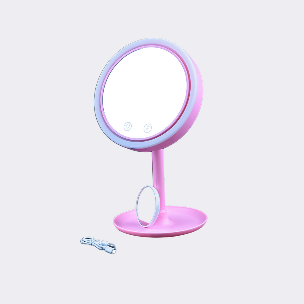 مرايا تجميل مضيئة مع مروحة لوضع المكياج مع وجود مرايا مكبرة تلتصق بالمرايا الاساسية لرؤية اوضح ، مرايا شحن USB