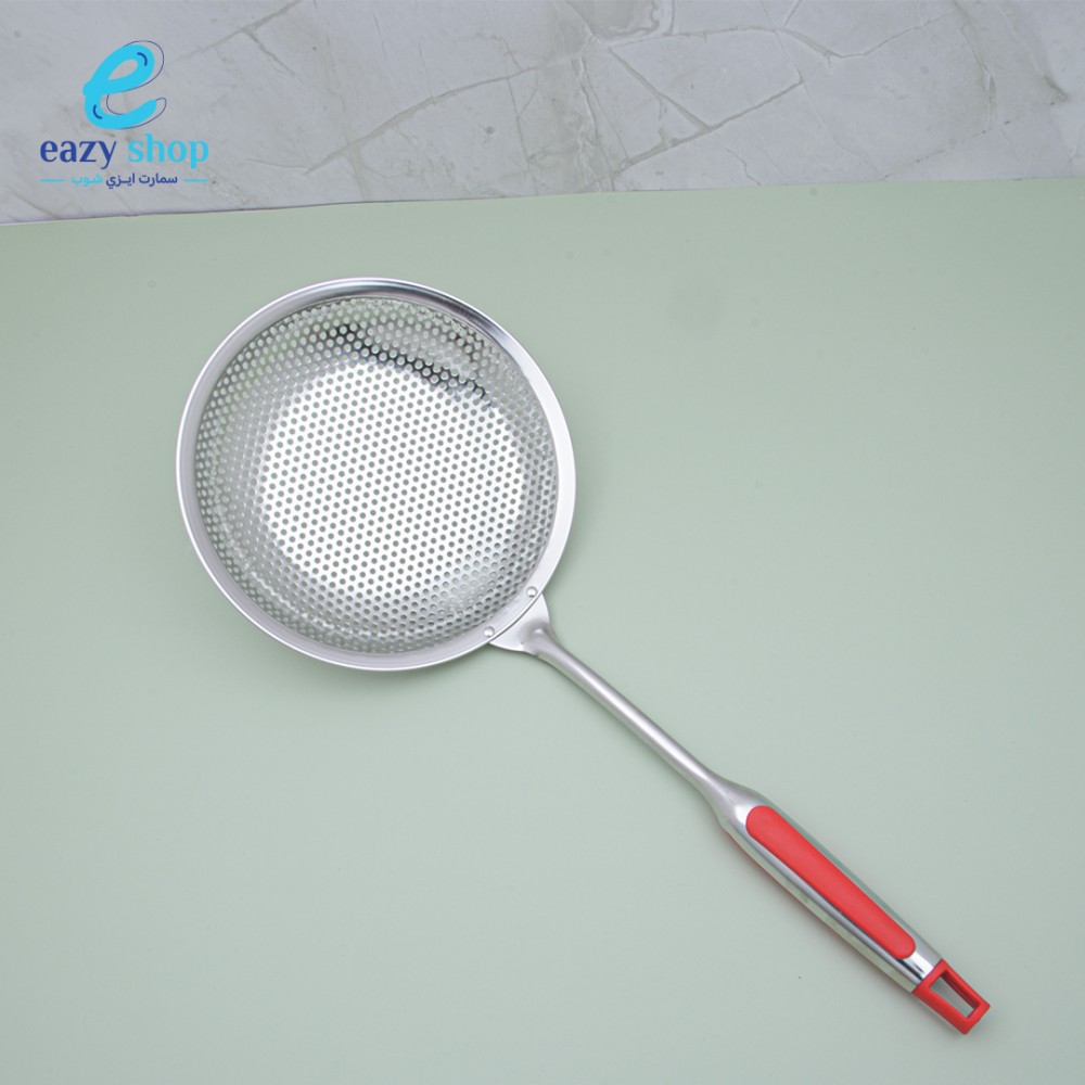 مشن يدوي حجم وسط لتصفية الزيت من شوائب الطبخ ويسهل عملية التقاط الأطعمة كالسمبوسة والطعمية والشبس وغيرها من الاطعمة المقلية يتميز بمقبض يدوي بلاستيكي يمنع الانزلاق
