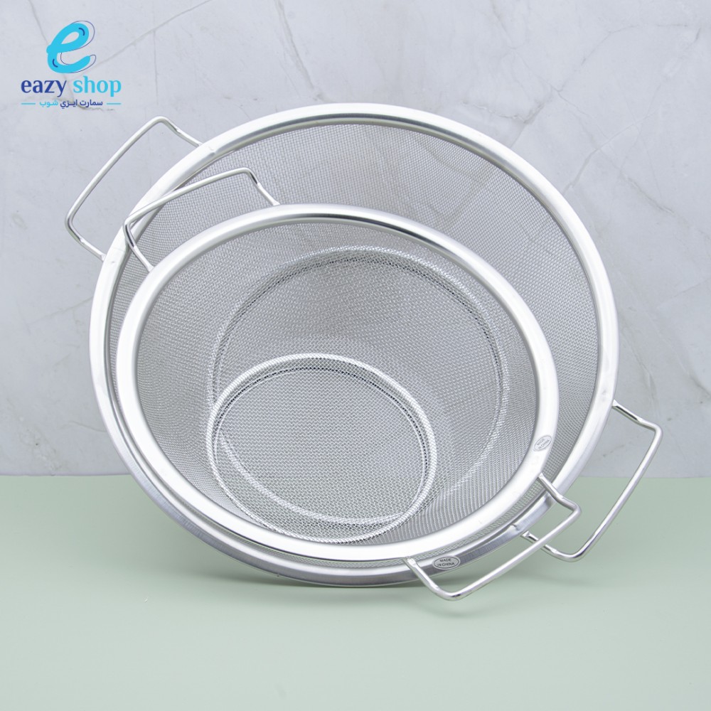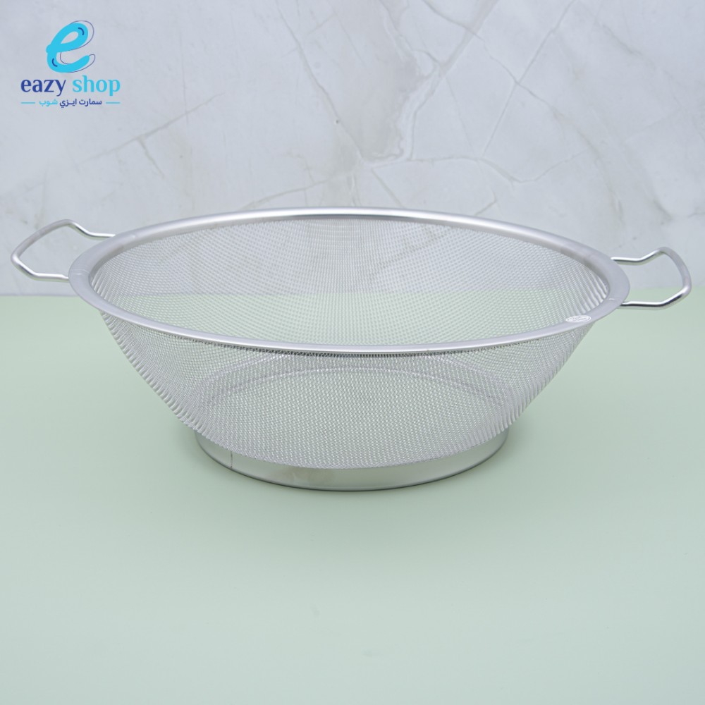 مشن يدوي لتصفية الارز وشطف الفواكه والخضروات من الستانلس ستيل المقاوم للصداء يأتي بمقبضين من الاستيل بتصميم مريح يمنع الانزلاق
