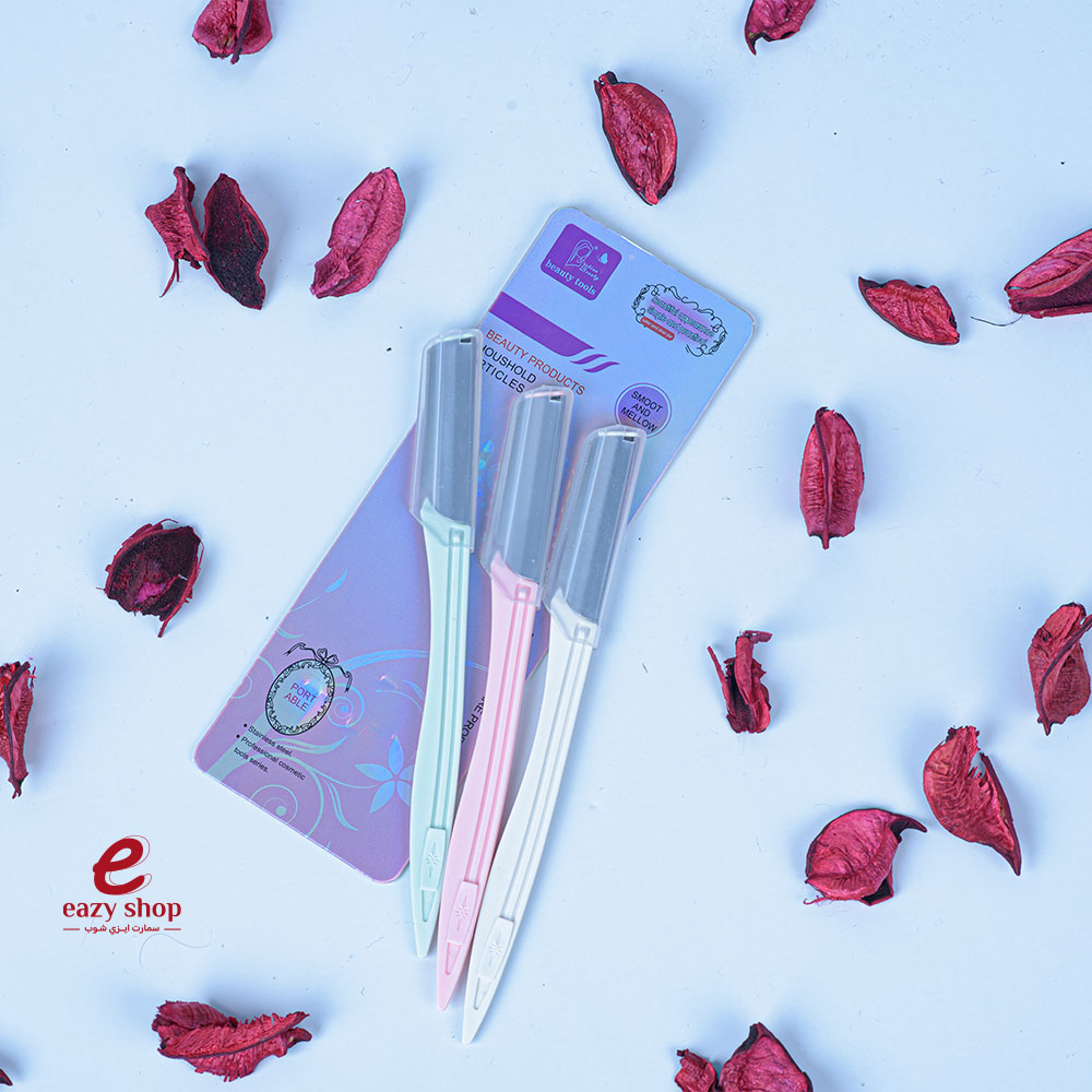 موس حواجب 3 قطع لتشذيب الحواجب والتخلص من الشعر الغير مرغوب به ، ياتي مع غطاء بلاستيكي لكل شفرة